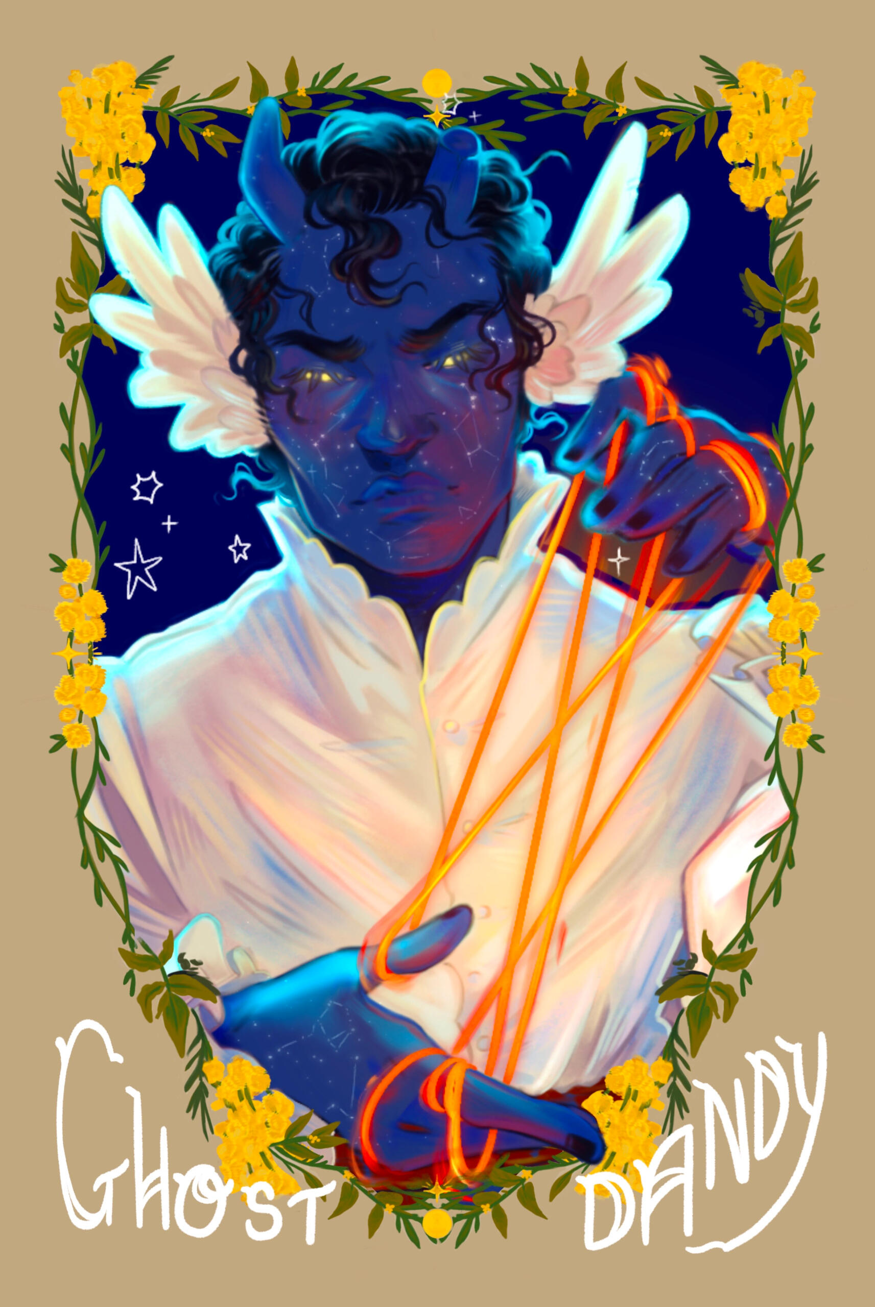 Mi Phillips Harrington (they/them/fae/faer), known within the UK art community as Ghost Dandy and Co, is a queer, disabled artist and streamer that is best known for their illustrations of pretty boys surrounded by flowers and yellow halos.Mi is inspired by the art nouveau and pre-raphaelite art movements, as well as the Victorian language of flowers, floriography. Most of their work features original characters that explore different queer identities and relationships.Mi has worked as the lead artist for the independently published queer art and literature zines Pinkwashed Quarterly and The Mausoleum, where they produced unique cover art for each issue as well as page illuminations and title pages.They have also worked in partnership with organisations such as Comics Youth CIC and Wild and Kind CIC where they were commissioned to create artwork that raised money and awareness for marginalised individuals.In August 2018, Mi showcased their art series 'Drink Your Gender' at People Power on Paper, an art exhibition at Cave Pimlico, showcasing young artists and their art discussing modern social progress. Alongside this, one of their queer themed button badges is included in a Discover Bucks Museum collection that focuses on art and everyday items from minority groups in the county.Outside of their art, Mi has a Bsc in Biotechnology with a specialism in plant science, working as a part time freelancer in digital publishing.