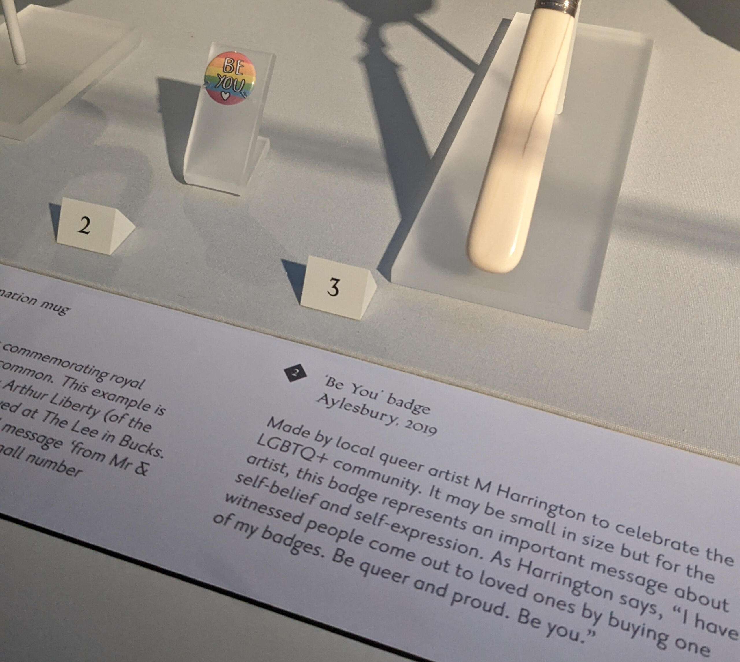 In 2019, one of my pride button badges was entered and showcased in the CommUnity Voices Exhibition, curated by the Discover Bucks Museum.The exhibition represented a number of minority communities from Bucks county including the LGBTQ+ community, which my badge represented.My badge 'Be You' encourages pride in queer identities and for being an authentic version of yourself whether out or still questioning and finding yourself.